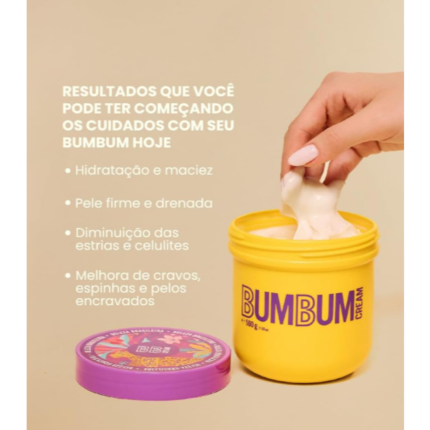 🧴 Bumbum Cream – Hidratação, Firmeza e Textura Uniforme Descubra o cuidado que vai além da hidratação: o Bumbum Cream foi desenvolvido para reduzir celulites, estrias, flacidez e foliculite, deixando a pele mais lisinha, firme e radiante. Sua fórmula exclusiva age na melhora da textura da pele, atenuando o efeito "casca de laranja" com uso contínuo. 💖 Benefícios: Estimula a firmeza e melhora a elasticidade da pele Reduz visivelmente a aparência de celulites e estrias Hidrata profundamente e deixa toque macio Auxilia no combate a pelos encravados Com ação termogênica: ativa a circulação local 🌸 Fragrância envolvente com notas de violeta, cereja, baunilha e caramelo. Sensação de perfume sofisticado por horas! 🧴 Como usar: Aplique com a pele limpa, massageando a região dos glúteos com movimentos circulares até completa absorção. A vermelhidão e sensação de calor são normais devido ao efeito termogênico. ✨ Dica extra: o uso diário potencializa os resultados. Ideal para rotinas de skincare corporal e cuidados pós-banho.