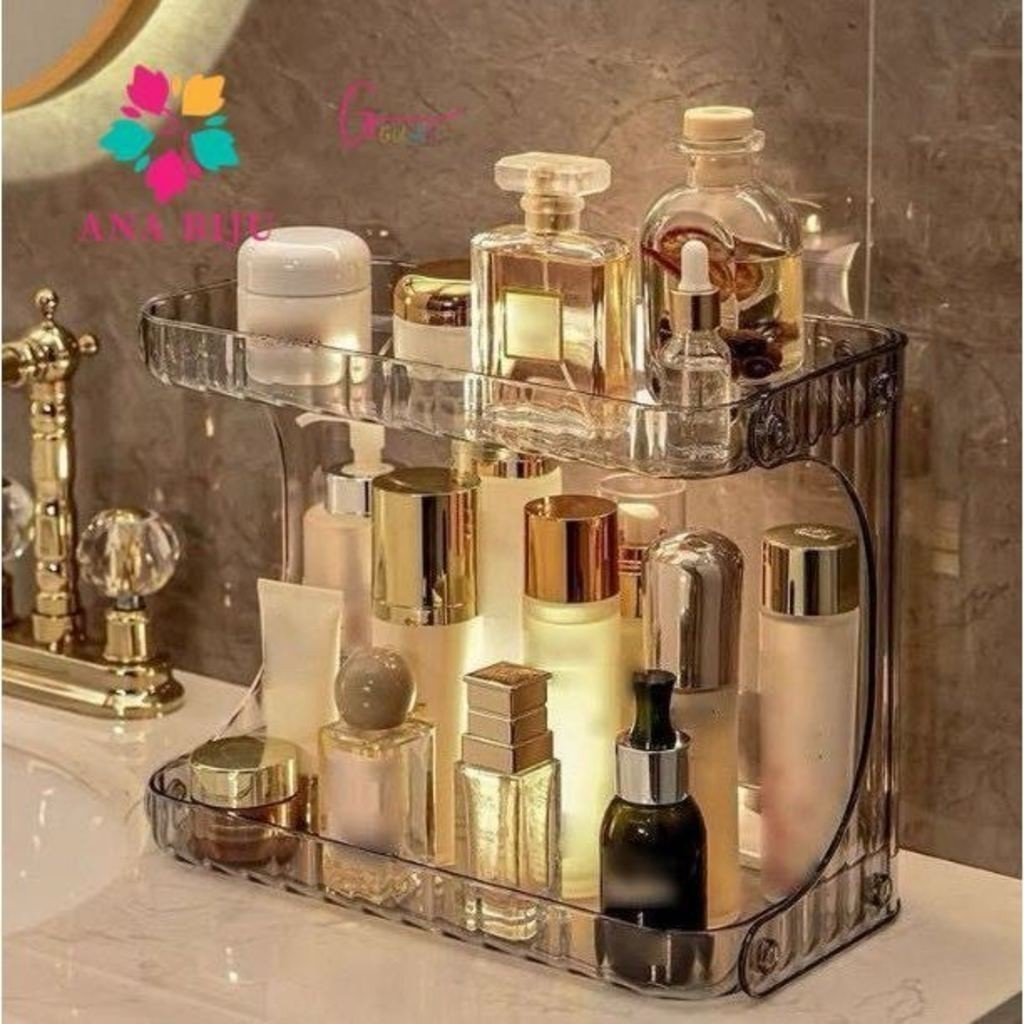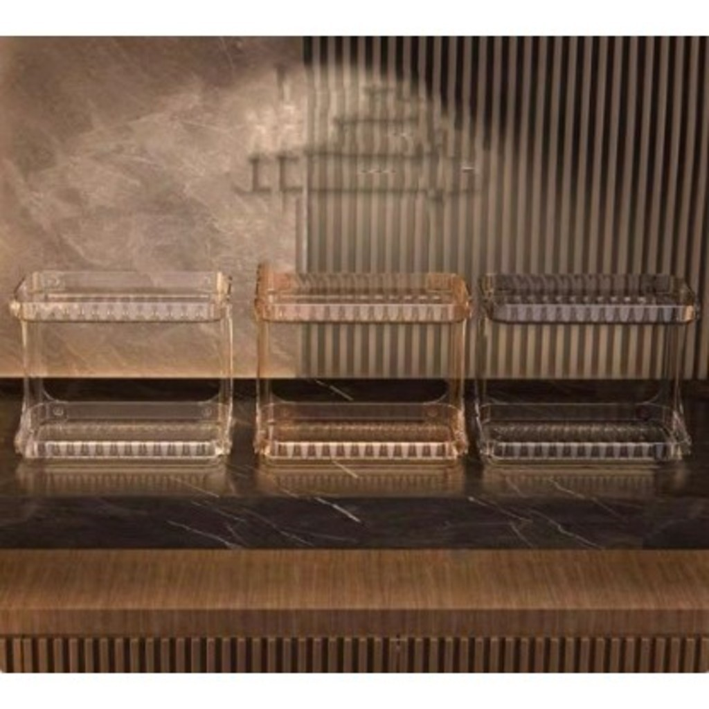 O Organizador de Maquiagem Acrílico Diamante com 2 Andares é a solução ideal para quem deseja manter maquiagem, skincare e itens de autocuidado sempre organizados, com praticidade e um toque sofisticado.